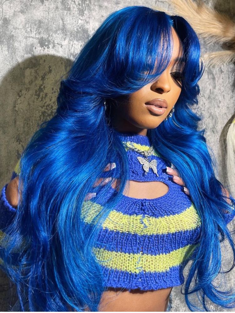 Wigcool Curtain Bangs Blue Body Wave Wig Pre Plucked Glueless Swiss HD Lace Human Hair Wigs